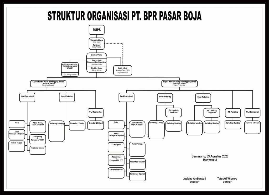 BPR PASAR BOJA merupakan salah satu lembaga keuangan yang berkembang pesat dan menyediakan beragam jasa dan layanan perbankan, dengan produk utama yaitu Kredit, Tabungan, Deposito. Dengan didukung oleh sumberdaya manusia yang profesional dan berkualitas di bidang perbankan BPR PASAR BOJA mampu bersaing.